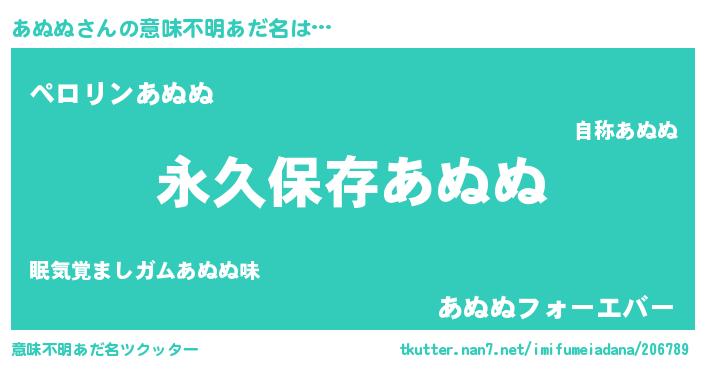 | 男性向けラノベタイトル風あだ名 | 『あぬぬという概念が存在しない退屈な世界 』 |