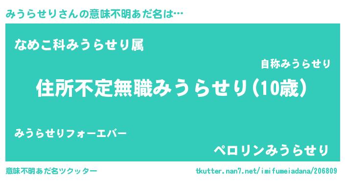| 男性向けラノベタイトル風あだ名 | 『魔弾の王とみうらせり』 |