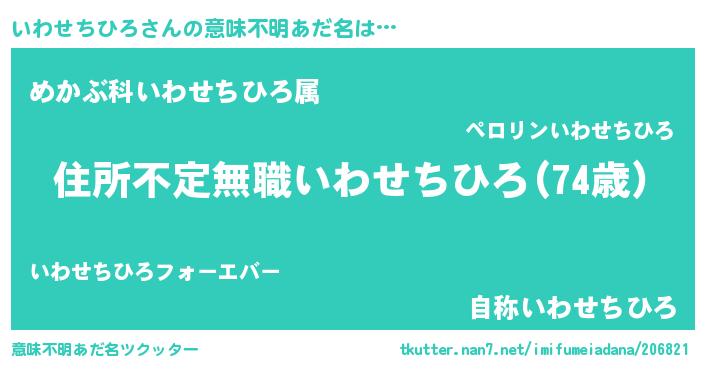 恥ずかしいあだ名 | 『イワセチヒロデラックス』『いわっちょ』 |