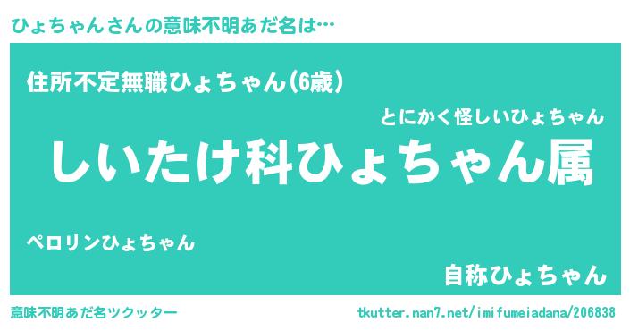 | 料理風あだ名 | 『ひょちゃんごはん』 |