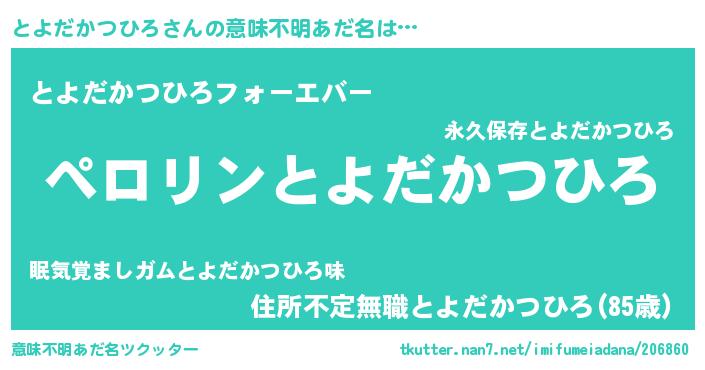 胡散臭い通販商品みたいなあだ名 | 『億万長者になれるブレスレット…その名も「とよだかつひろ」』 |