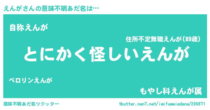 男性向けラノベタイトル風あだ名 | 『えんがの嫁は女の子じゃないと思った?』 |