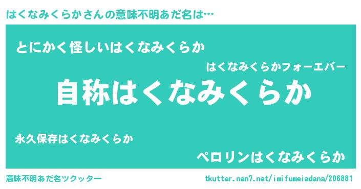 恥ずかしいあだ名 | 『ハクナミクラカデラックス』『はくちん』 |