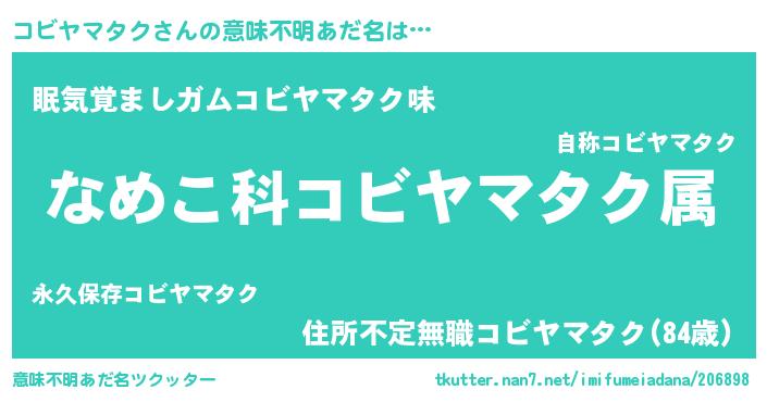 | 男性向けラノベタイトル風あだ名 | 『コビヤマタクに滅ぼされるだけの簡単なお仕事です』 |