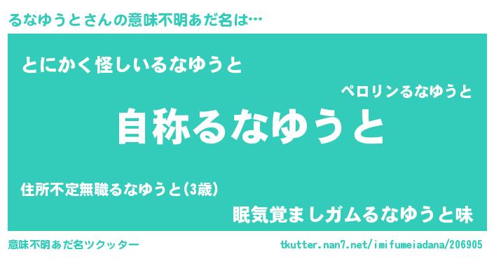 | 男性向けラノベタイトル風あだ名 | 『Re:るなゆうとから始める異世界生活』 |