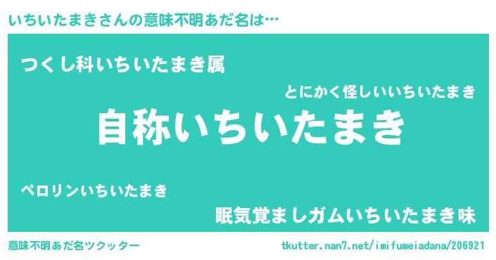 | 肩書あだ名 | 『いちいたまき閣下』『いちいたまき中将』 |