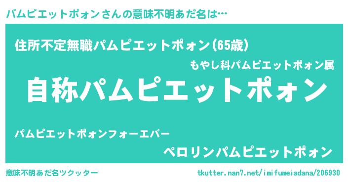| 女子向けラノベタイトル風あだ名 | 『パムピエットポォンアンティーク』 |