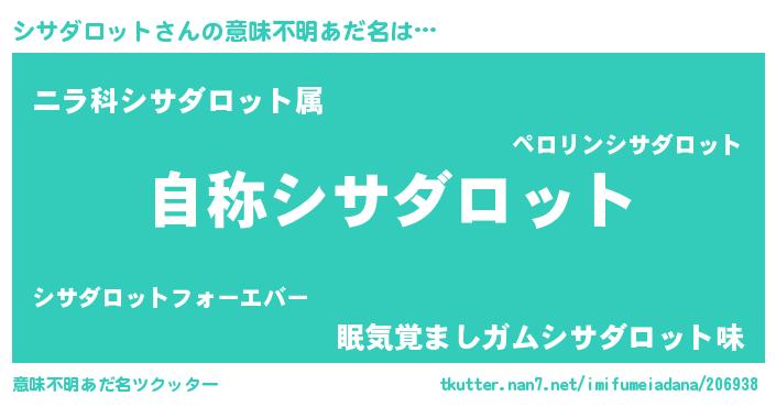 男性向けラノベタイトル風あだ名 | 『うちのシサダロットが世界を掌握している!』 |