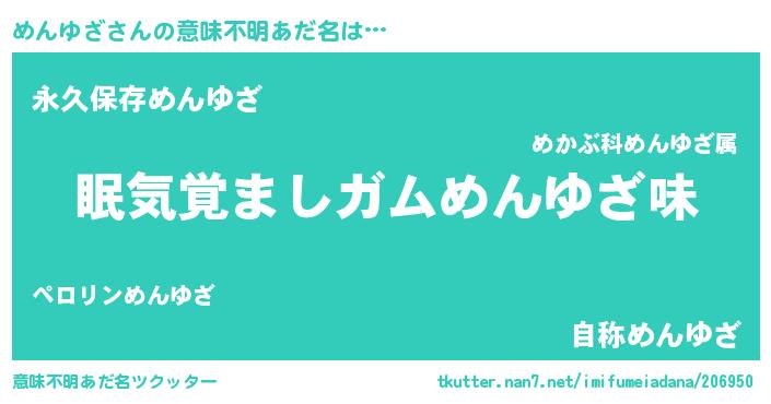 ヘコむあだ名 | 『めんゆざ(遠い目)』『めんにゅー』 |