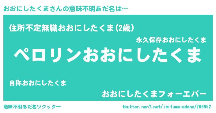 男性向けラノベタイトル風あだ名 | 『うちのおおにしたくまが世界を掌握している!』 |
