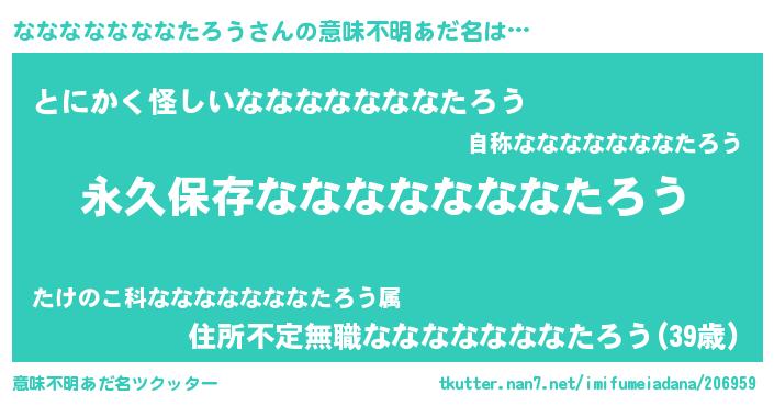 女子向けラノベタイトル風あだ名 | 『異世界でカフェなななななななたろうを開店しました。』 |