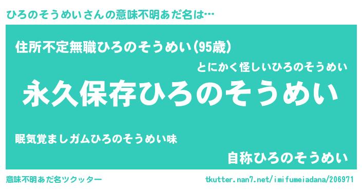 | 胡散臭い通販商品みたいなあだ名 | 『絶対に幸福をもたらす水素水…その名も「ひろのそうめい」』 |