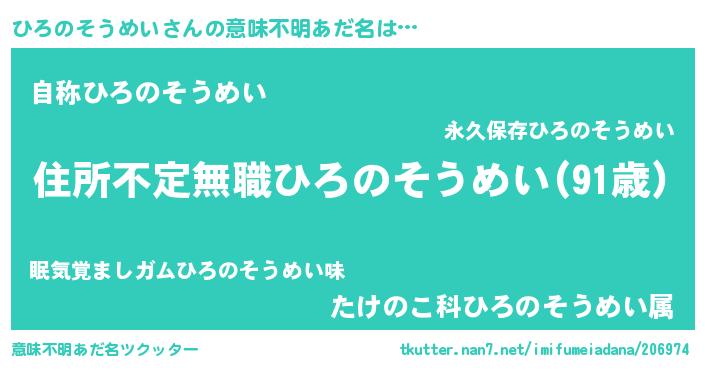 | ヒーロー風カッコイイあだ名 | 『仮面ヒロダー』『ネオヒロノソウメイ』 |