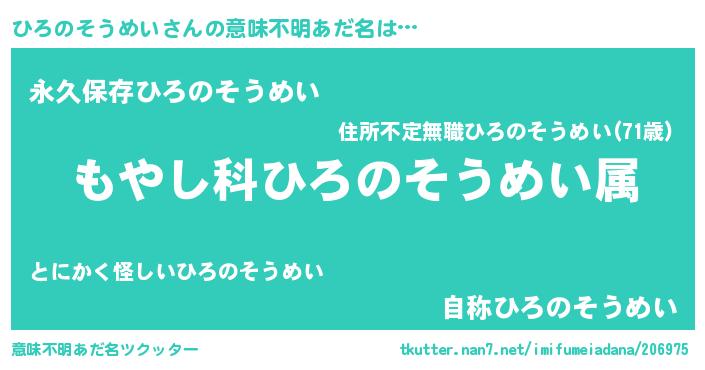 | 胡散臭い通販商品みたいなあだ名 | 『来世でも幸せになれる水素水…その名も「ひろのそうめい」』 |