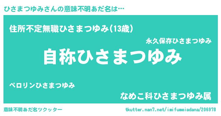 ヘコむあだ名 | 『ひさまつゆみ(小並感)』『ひさふぇ~』 |