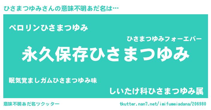 男性向けラノベタイトル風あだ名 | 『ひさまつゆみという概念が存在しない退屈な世界 』 |