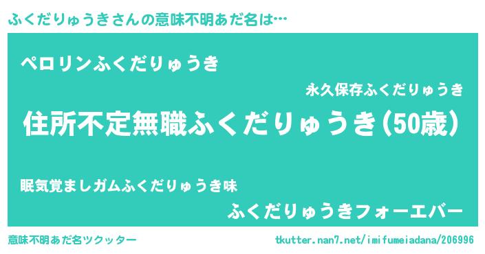 | 女子向けラノベタイトル風あだ名 | 『ふくだりゅうきが死なない童話 林檎のふくだりゅうきの診療簿』 |