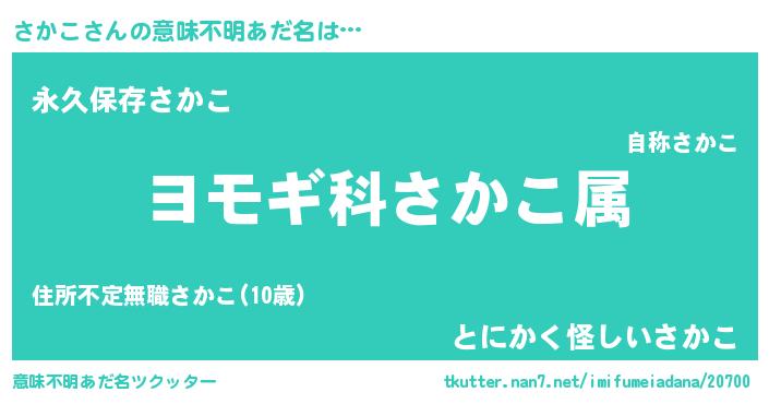 | 胡散臭い通販商品みたいなあだ名 | 『前代未聞の健康食品…その名も「さかこ」』 |