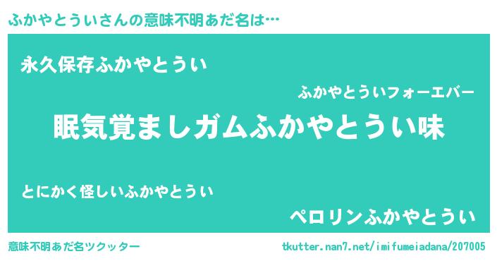 | 欧米人風あだ名 | 『ダニエルふかやとうい』 |