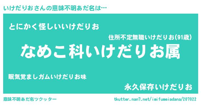 男性向けラノベタイトル風あだ名 | 『転生したらいけだりおだった件』 |