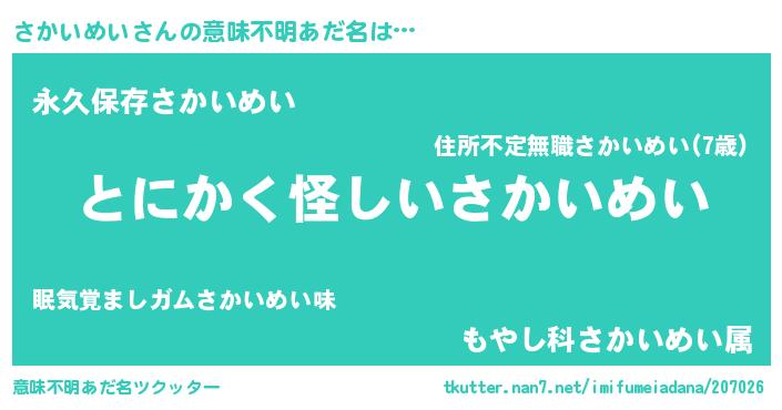 ヘコむあだ名 | 『さか太郎』『さかいめい(苦笑)』 |