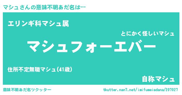 ファンタジー風あだ名 | 『エターナルマシュー』『ゼマシトゥ』 |