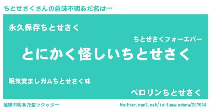 ヘコむあだ名 | 『ちとっぺ』『ちとせさく(小並感)』 |