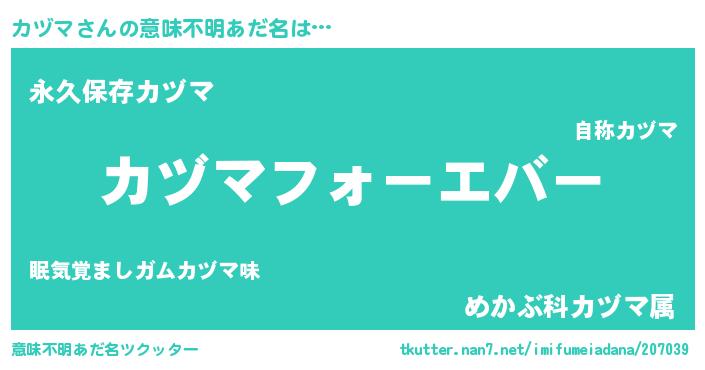女子向けラノベタイトル風あだ名 | 『カヅマの雑貨屋さん』『闇のカヅマ』 |