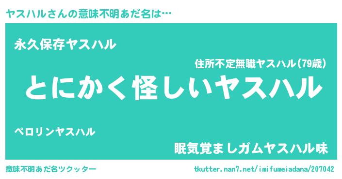 ポケモン風あだ名 | 『ヒヤスハル』『ヤスゴンZ』 |