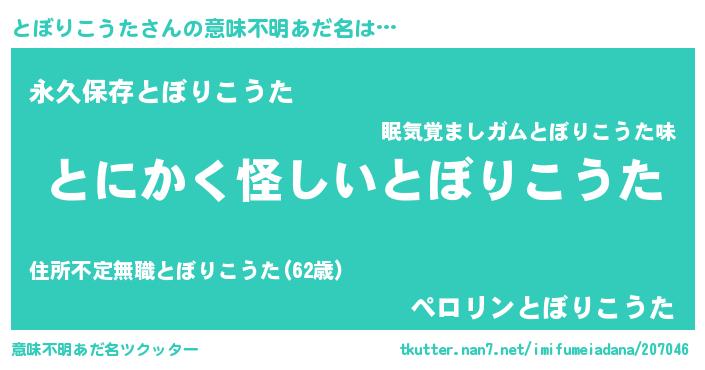 | 料理風あだ名 | 『とぼりこうたの豆乳スープ』 |