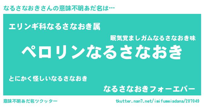 ヒーロー風カッコイイあだ名 | 『スーパーナルサナオキ』『炎刃騎士ナル』 |
