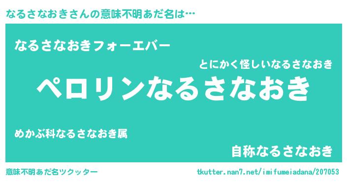 ヒーロー風カッコイイあだ名 | 『スーパーナルサナオキ』『黄金騎士ナル』 |