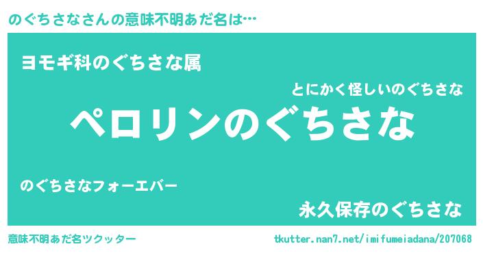ヘコむあだ名 | 『のぐもー』『のぐちさな(苦笑)』 |