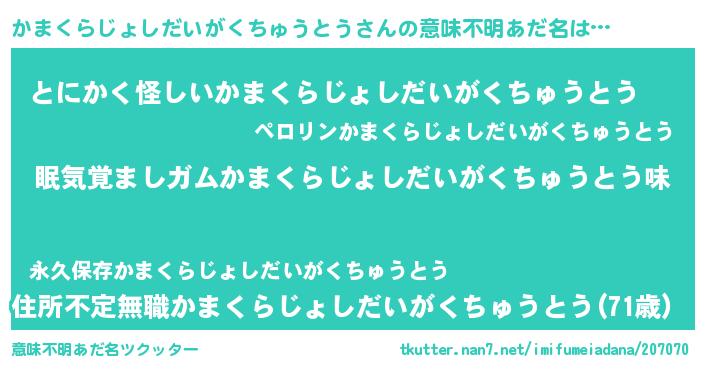 男性向けラノベタイトル風あだ名 | 『おまえをオタクにしてやるから、俺をかまくらじょしだいがくちゅうとうにしてくれ! 』 |