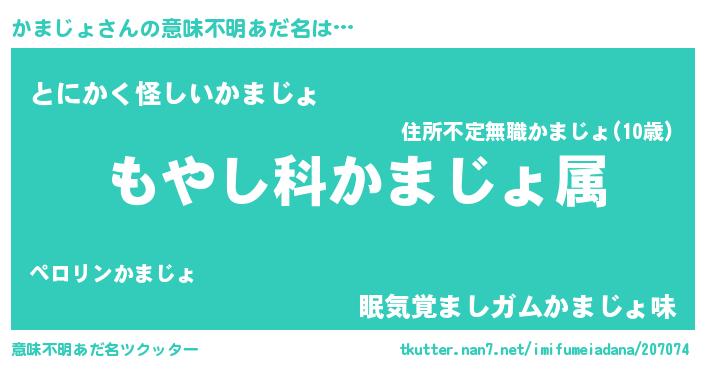 | 胡散臭い通販商品みたいなあだ名 | 『伝統あるサプリメント…その名も「かまじょ」』 |