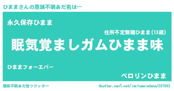 | ヘコむあだ名 | 『ひまま(爆)』『ひまもー』 |