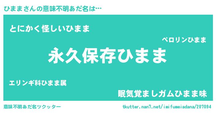 | ヘコむあだ名 | 『ひまま(遠い目)』『ひまっちょ』 |
