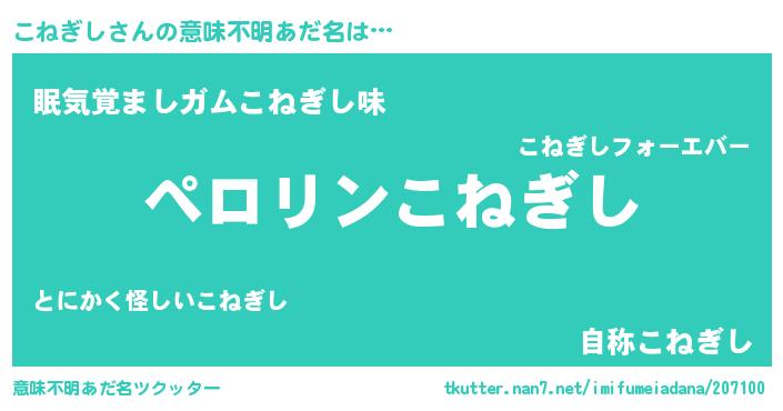 男性向けラノベタイトル風あだ名 | 『こねぎしの憂鬱』 |