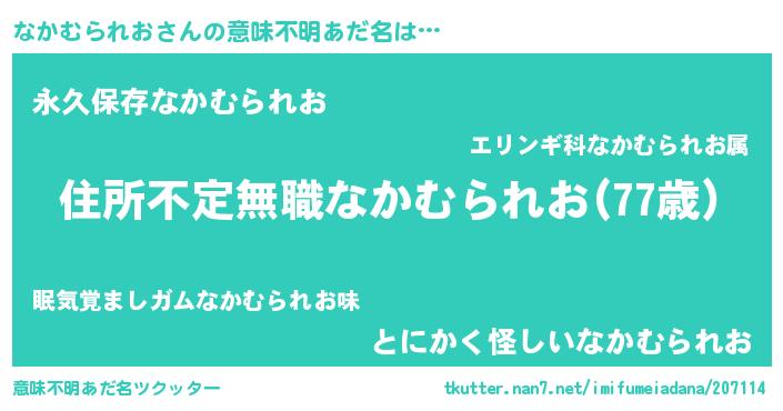 ヘコむあだ名 | 『なかむられお(苦笑)』『なかぷりん』 |