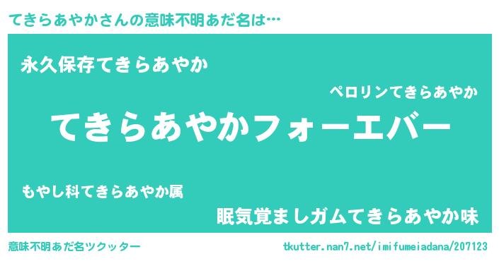 ファンタジー風あだ名 | 『エターナルテキラアヤカー』 |