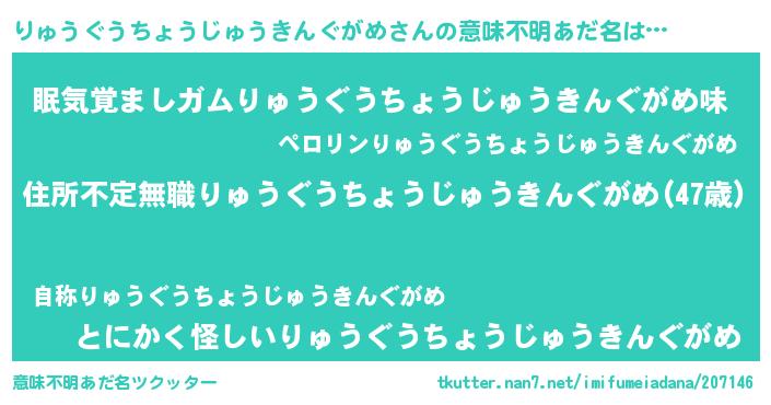 伝説のあだ名 | 『救世主となる占い師りゅうぐうちょうじゅうきんぐがめ』 |