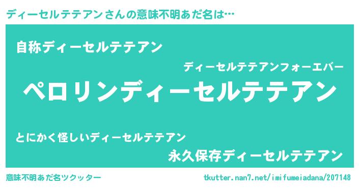 ヘコむあだ名 | 『ディふぇ~』『ディーセルテテアン(爆)』 |