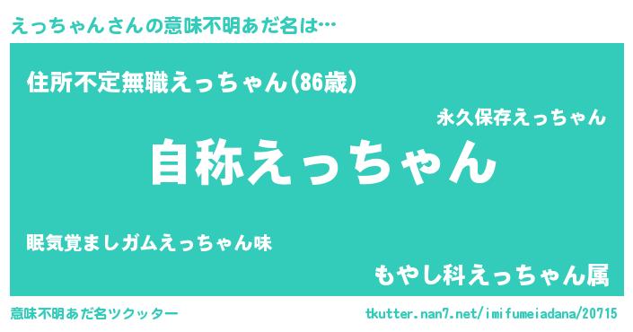 | 男性向けラノベタイトル風あだ名 | 『緋弾のエッチャン』 |