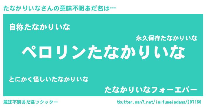 ヒーロー風カッコイイあだ名 | 『スーパータナカリイナ』『魔戒騎士タナ』 |