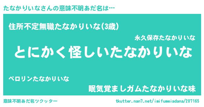 女子向けラノベタイトル風あだ名 | 『たなかりいな様がみてる』 |
