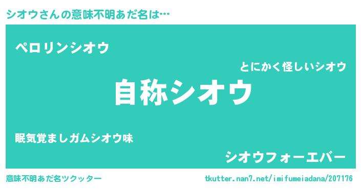 女子向けラノベタイトル風あだ名 | 『闇のシオウ』『シオウ姫と円卓の騎士』 |