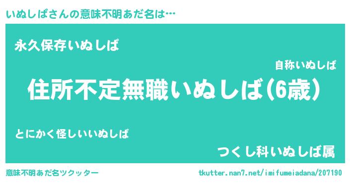 女子向けラノベタイトル風あだ名 | 『悪役いぬしばに転生したようですが、知った事ではありません』 |