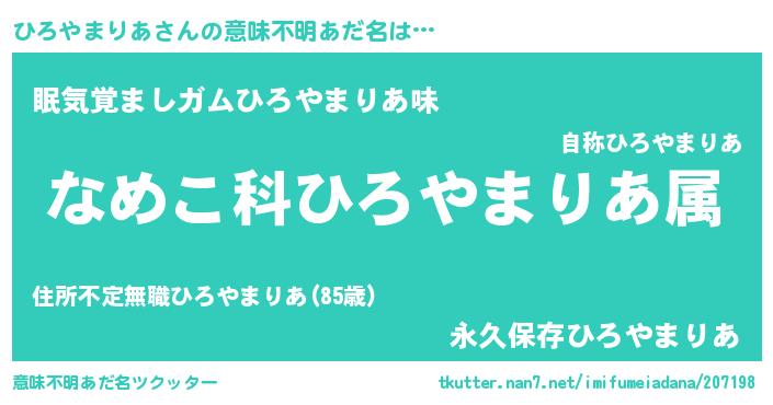 ヘコむあだ名 | 『ひろやまりあ(遠い目)』『ひろふぇ~』 |