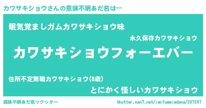 | ヒーロー風カッコイイあだ名 | 『ウルトラカワサキショウマン』 |