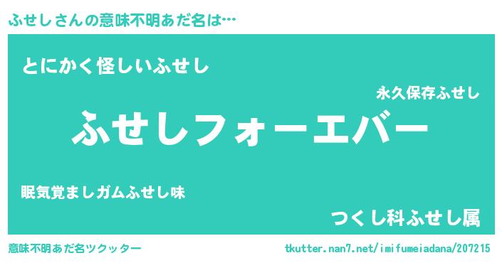 | 料理風あだ名 | 『栗とふせしのマフィン』『ふせしごはん』 |